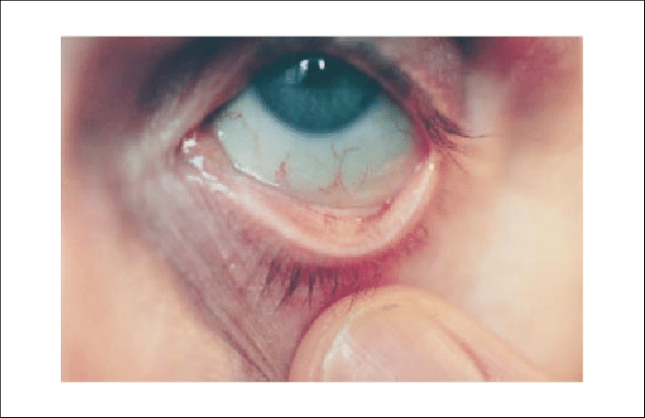Conjunctival Pallor – Sheth TN, Detsky AS. The relation of conjunctival pallor to the presence of anemia. J Gen Intern Med. 1997;12(2):102-106.