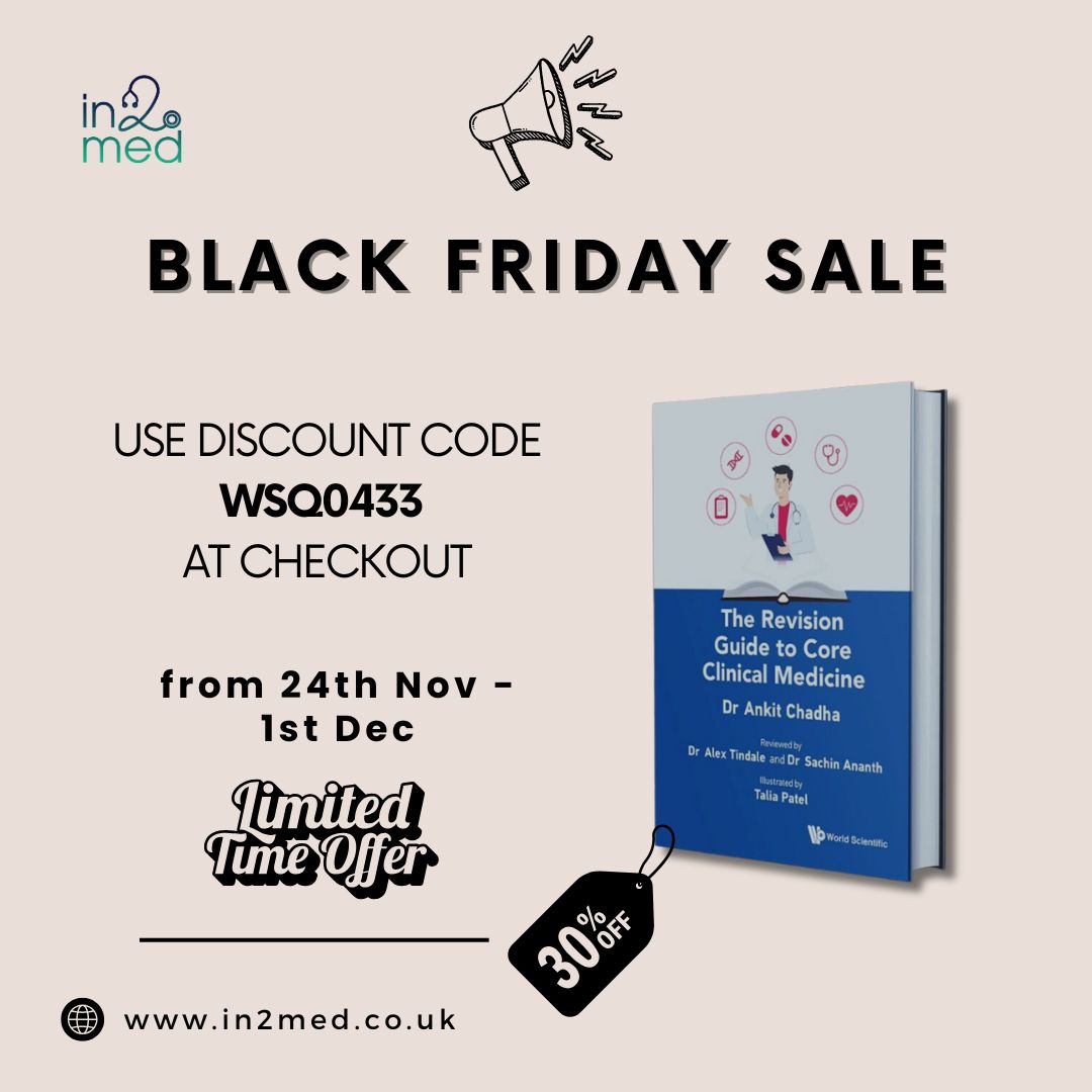 This week, my publishers have released a special Black Friday Deal, offering a massive 30% DISCOUNT on my textbook, “The Revision Guide to Core Clinical Medicine.” In order to use this, you can buy the book directly from World Scientific Publishing using the following discount code at checkout. This code will be active for the next 7 days!