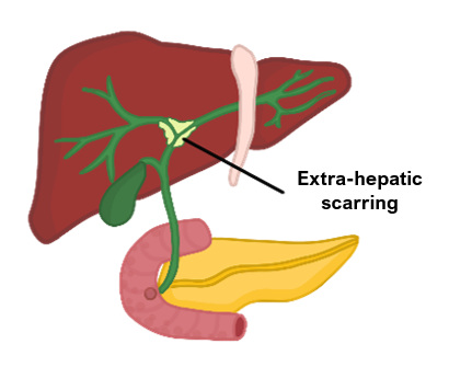 This can result in strictures, causing a backlog of bile which results in jaundice.